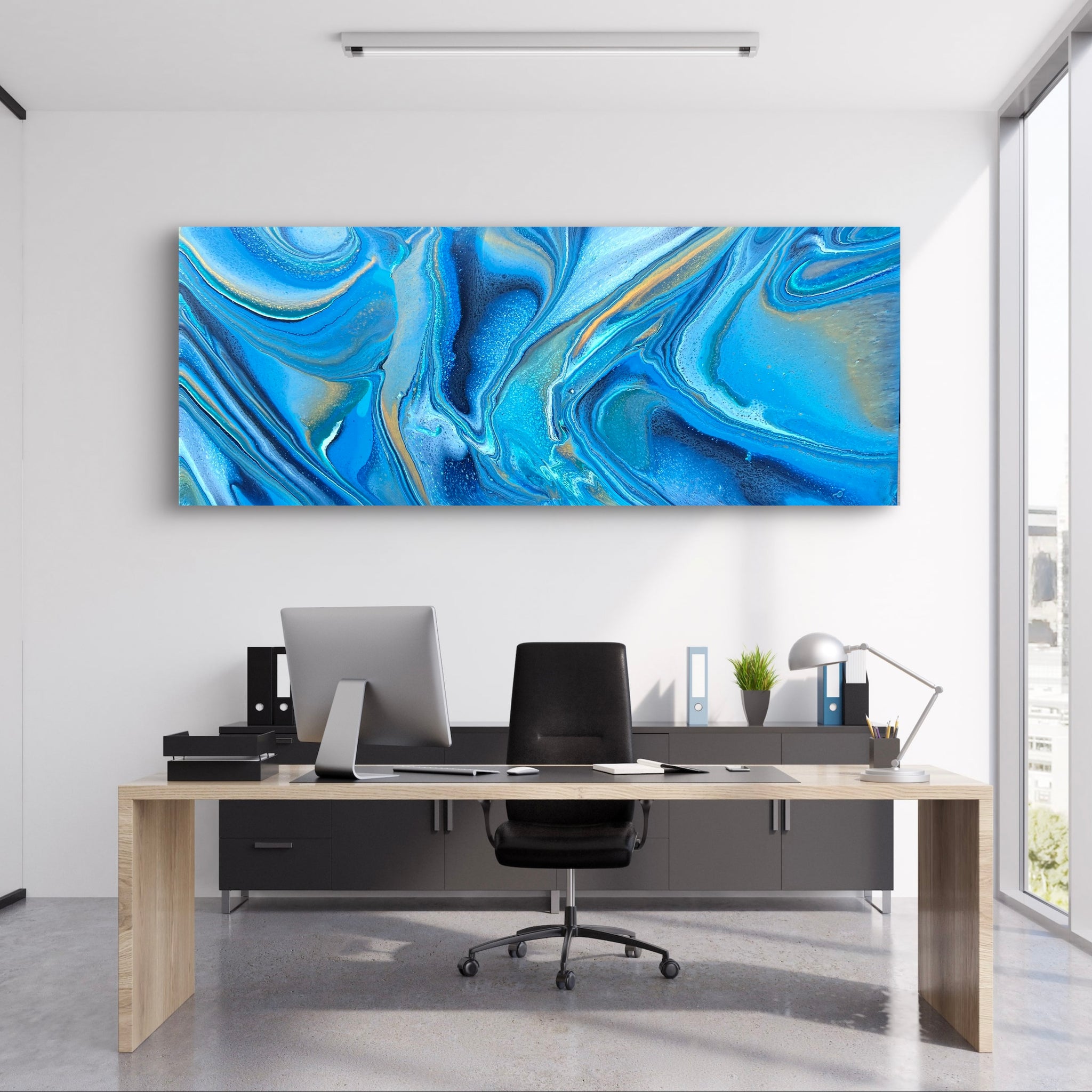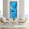 This gorgeous piece is 200cm x 80cm and features blue, turquoise, navy and white acrylics. I will sign the bottom left corner once the orientation is confirmed just in case you’d like it hung a different way.