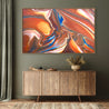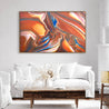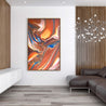 This stunning piece is 160cm x 100cm and features shades of dark blue, orange, ochre, umber, sienna, burnt oranges and white acrylics. I will sign the bottom left corner when the orientation is confirmed as this painting can be hung multiple ways.