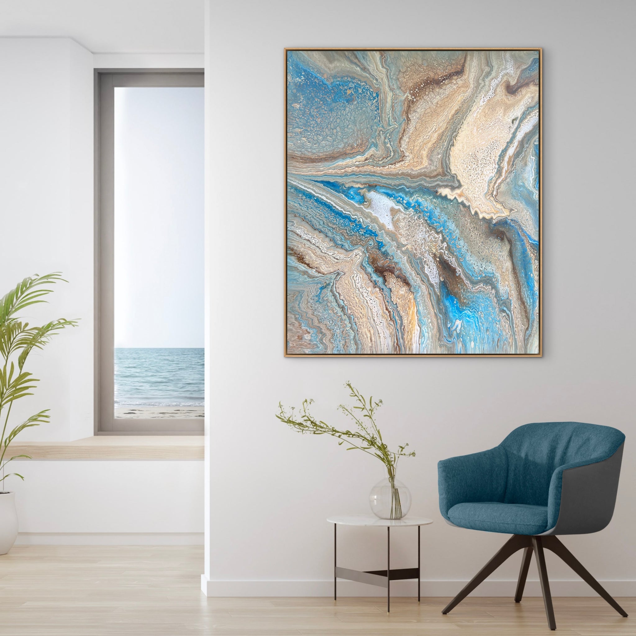 These paintings are created on a 40mm frame wrapped in the highest quality canvas. I use thinners, Surfactants and Synthetic Polymers to create pieces inspired by aerials, marble, granite and seascapes. The sheer number of variables in each painting makes every piece one of a kind and can never be replicated. Having said that, If this piece caught your eye but isn’t quite the right size or colour/s please reach out and we can discuss the possibility of doing a commission in this vein.