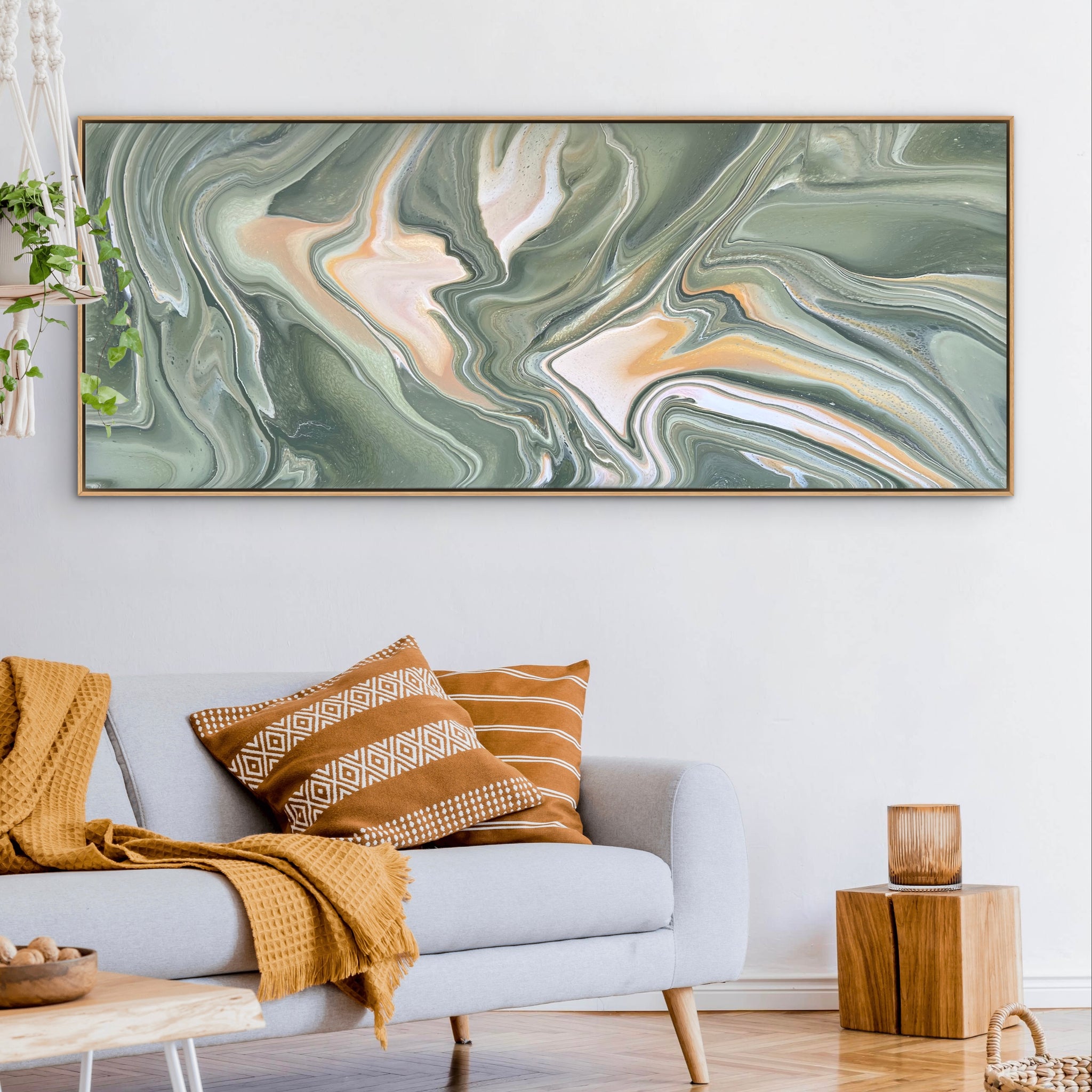 I also offer my own personal high quality frames. I can provide black, white, midnight blue or natural Tasmanian oak floating frames depending on your preference. Whilst my paintings look stunning unframed… a frame can add another level of interest and further tie the painting into your décor.