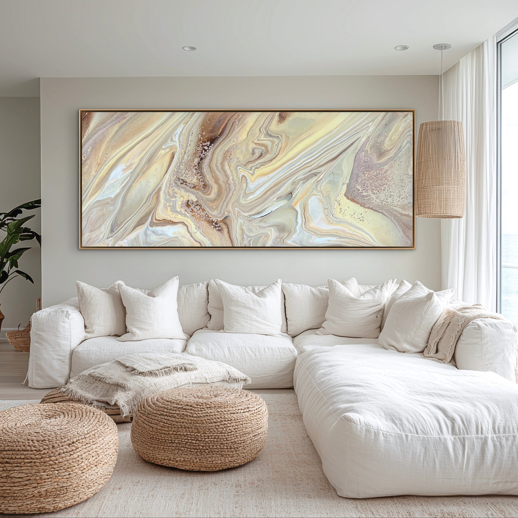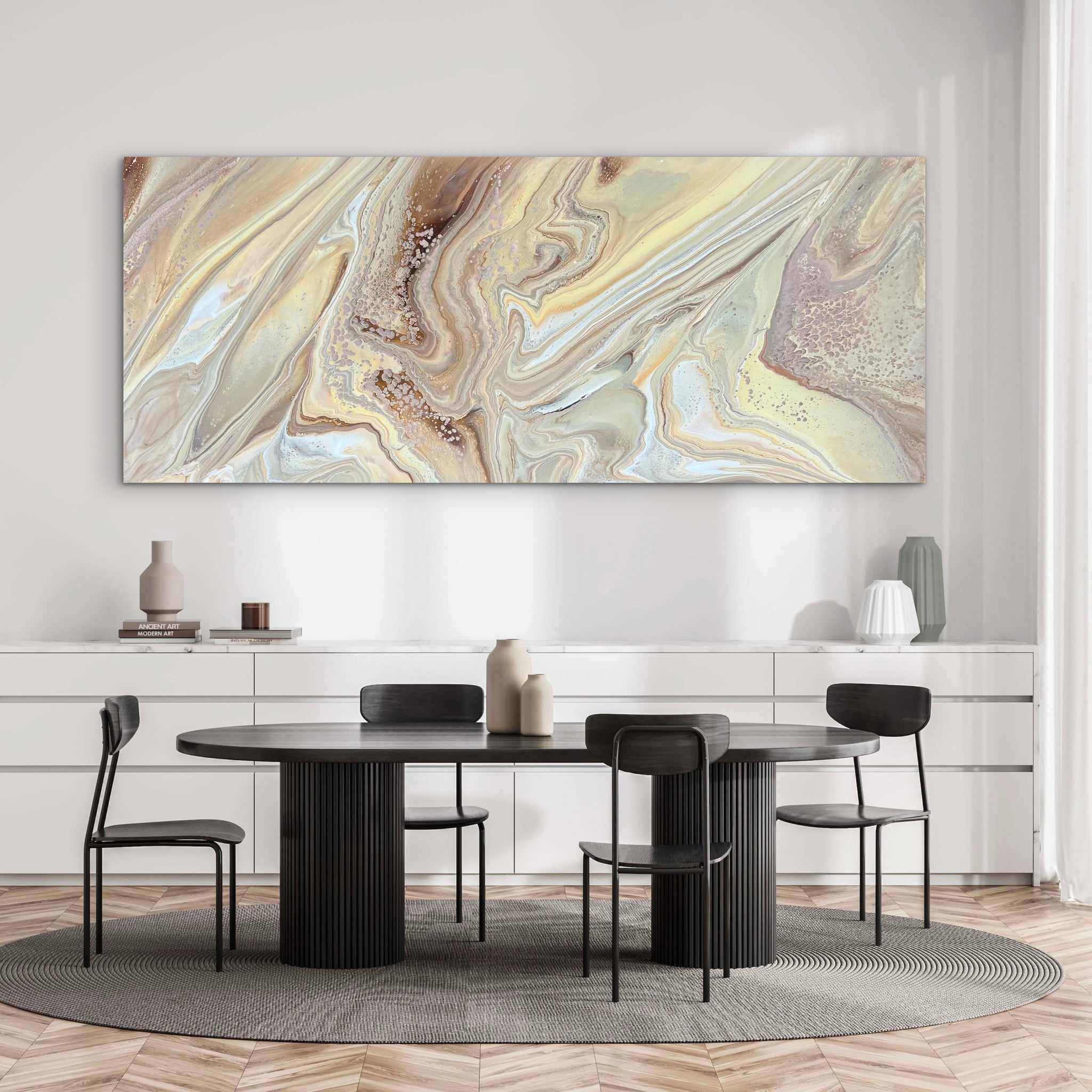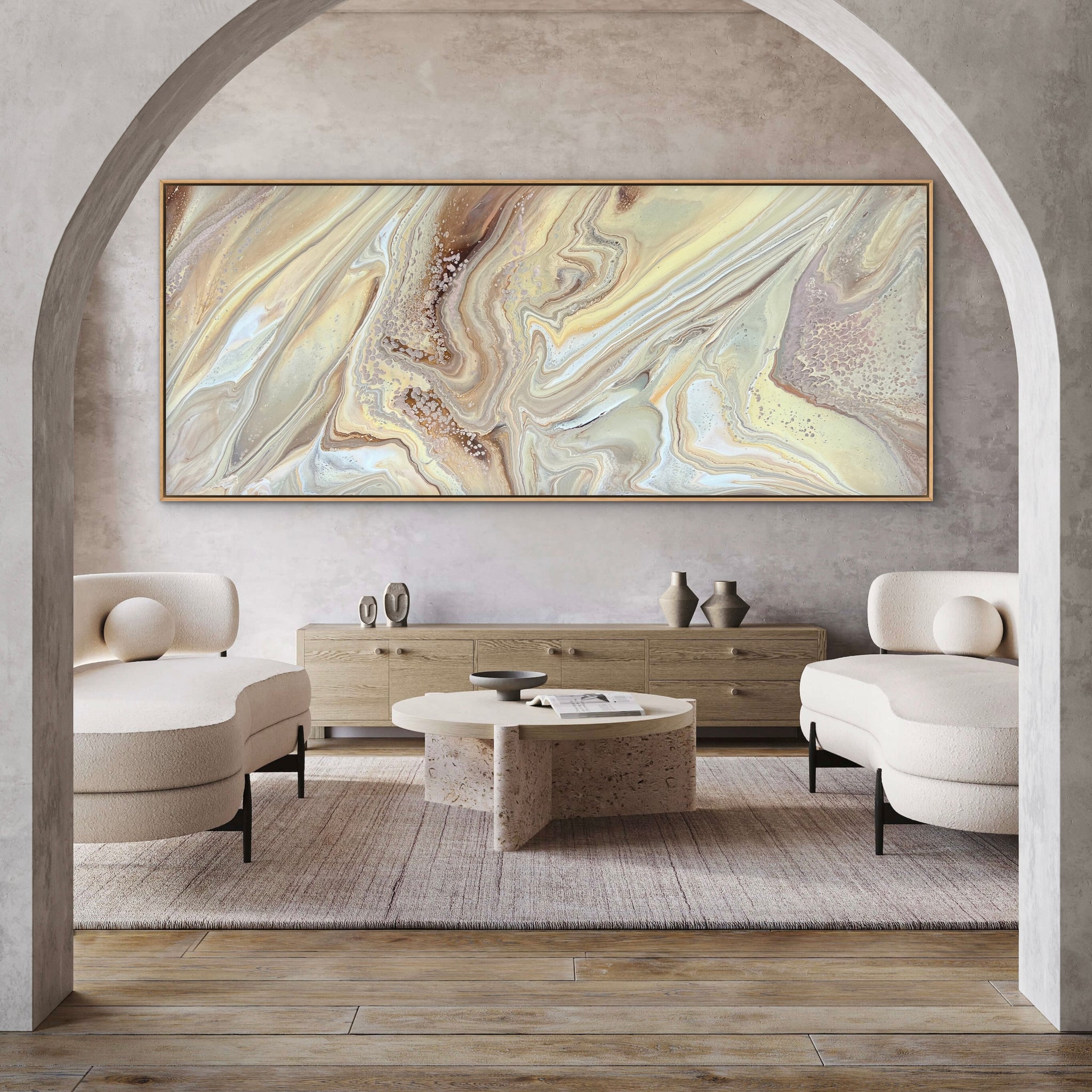 This HUGE stunner is 240cm x 100cm and features cream, blush, gold, bronze, umber, neutral grey, and white acrylics. I will sign the bottom left corner once the orientation is confirmed just in case you’d like it hung a different way.