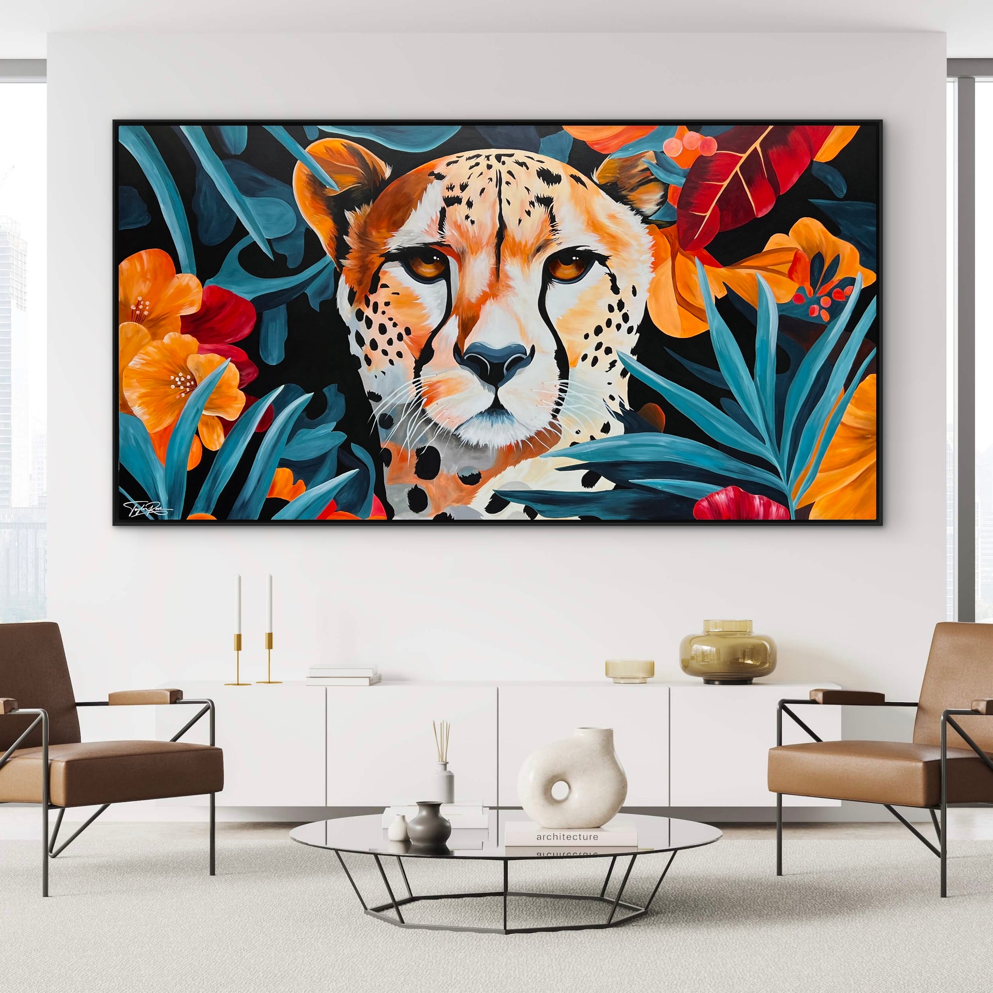 My “Tropical” series attempts to capture those tropical vibes through showcasing vibrancy, fresh colours, funk and beauty. The paintings in this series play into abstract, surrealism and pop and feature varied subject matter including sexy women, flowers, zebras, cheetahs and many more to come.